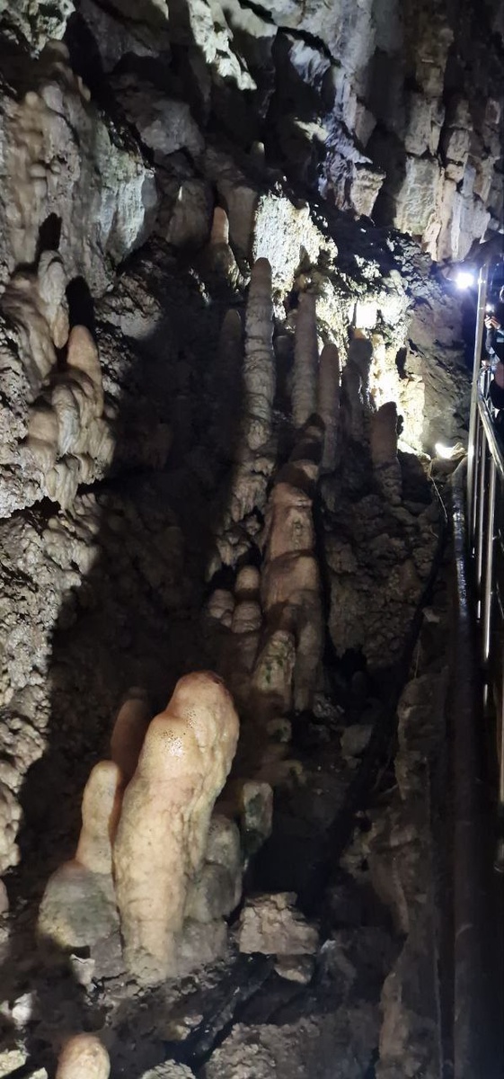 Сталагмиты и озера Новоафонской пещеры