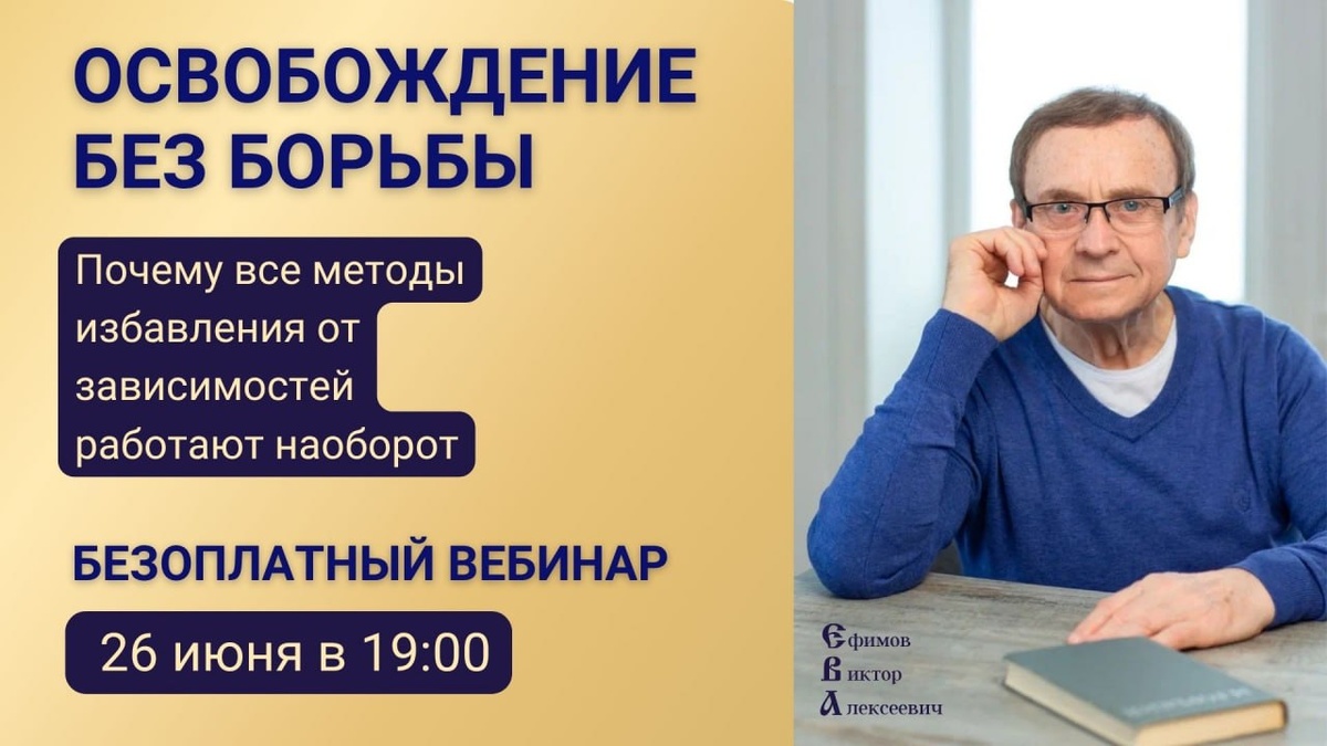 ❗️Уже сегодня в 19.00 вы можете узнать, почему ВСЕ традиционные методы борьбы с зависимостями работают наоборот. Что будет на вебинаре: 📌 Разоблачение мифа о "силе воли" 📌 Три уровня формирования зависимости 📌 Триединство: тело-дух-душа как ключ к освобождению Безоплатный вебинар 🎯 "ОСВОБОЖДЕНИЕ БЕЗ БОРЬБЫ: Почему все методы избавления от зависимостей работают наоборот" 📅 СЕГОДНЯ, 19:00 Регистрация еще открыта: https://viktorefimovschool.ru/registr_veb260625