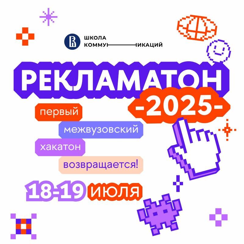 🔥 «Рекламатон»-2025 возвращается! 🔥 Самый масштабный межвузовский хакатон по data-driven коммуникациям снова с нами — и ты можешь стать частью этого события❗️ 🗓 Когда: 18–19 июля 📍 Где: Малый Трёхсвятительский переулок 8/2 с1. 📌 Для кого: для тех, кто умеет работать с данными и хочет применить свои навыки в реальной задаче от крупных брендов. 🎯Что вас ждёт на «Рекламатоне»? ✅ Реальная бизнес-проблема от ведущих брендов России, включая один из крупнейших холдингов ГК «Черноголовка», дейтинг-сервис с научным подходом TWINBY, AI-консалтинговую компанию Espada ✅ Экспертная оценка и ценные рекомендации от ведущих специалистов индустрии ✅Дополнительные баллы к поступлению на магистратуру «Цифровые коммуникации и продуктовая аналитика» (+25 баллов — победителям и 10 — участникам) 👥 Как участвовать? Собирайте команду из 3–5 человек и подавайте заявку до 17 июля на сайте хакатона. Нет команды? Не проблема! Ищите союзников в нашем телеграм-чате💬 🚀Рекламатон — первый шаг к к