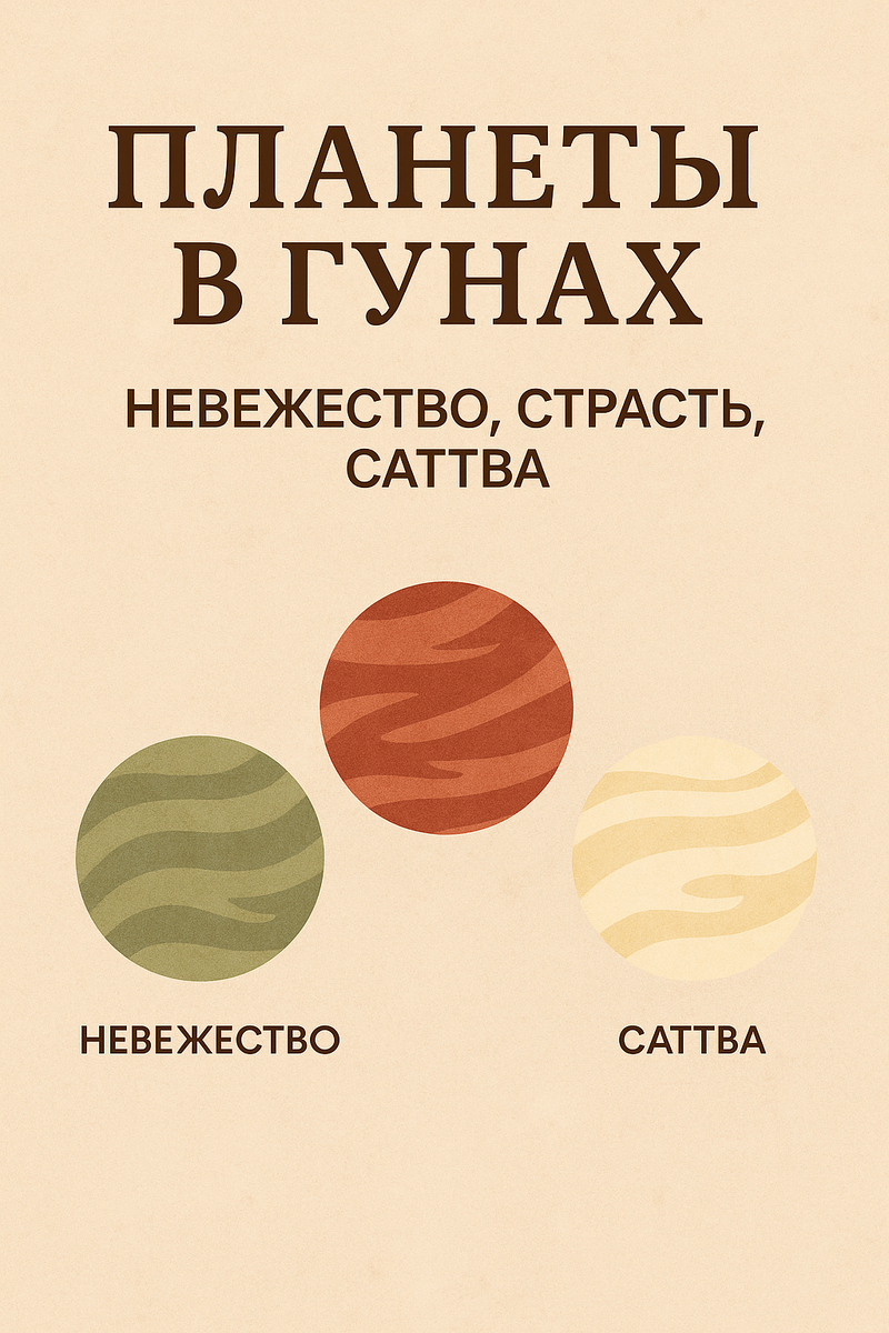 🔸 Саттва — благость, гармония, свет В Джйотиш эти гуны проявляются не только в людях, но и в планетах. Каждая из них несёт в себе определённую энергию, и знание гуны планеты помогает глубже понять, что она даёт в гороскопе и как её можно гармонизировать. Тамас охватывает то, что связано с инерцией, страхами, иллюзиями и застоем. Планеты этой гуны могут указывать на скрытые блоки, склонность к саморазрушению или запутанность. 🔹 Сатурн (Шани) — планета ограничений, страха, кармы и задержек.