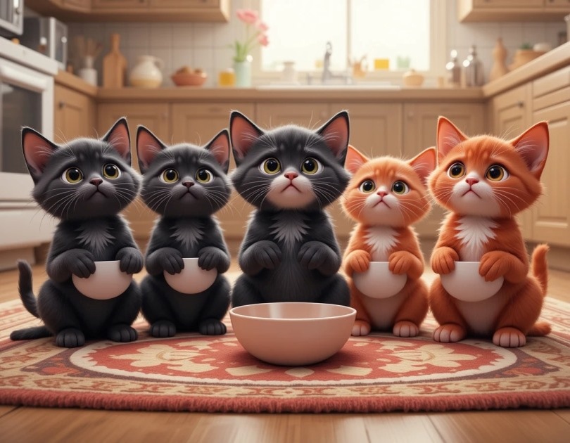 Утром он проснулся, накормил-напоил своих мяукающих подопечных и произнёс, умилённо глядя на процесс коллективного поедания селёдки и сухого корма: