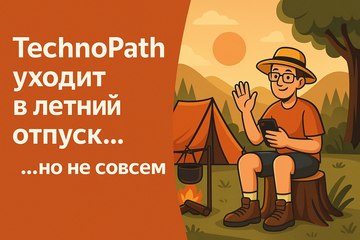 Лето пришло, солнце печёт, птички поют, а комары уже строят свои планы на мою кровь. Так что пришло время для важного объявления: Но! Это не значит, что канал замолчит полностью. Статьи всё ещё будут — просто реже и более спонтанно, чем обычно. Возможно, с запахом костра, гудками проезжающих поездов и где-то с песчинками в клавиатуре. Это лето я хочу прожить ярко: — походы с ночёвками; — эксперименты с тревел-видео; — новые идеи для будущих выпусков. TechnoPath не уходит на совсем — он просто переходит в режим энергосбережения до конца лета. А с сентября снова будет жара — не только за окном, но и в статьях. Не скучайте, я скоро вернусь. А если уж совсем будет тоскливо — пересмотрите выпуски «Кибер трибунала» или «Техно трэша». Поверьте, там есть чем поднять настроение (или уровень тревожности, это как повезёт). До связи, TechnoPath ✌️