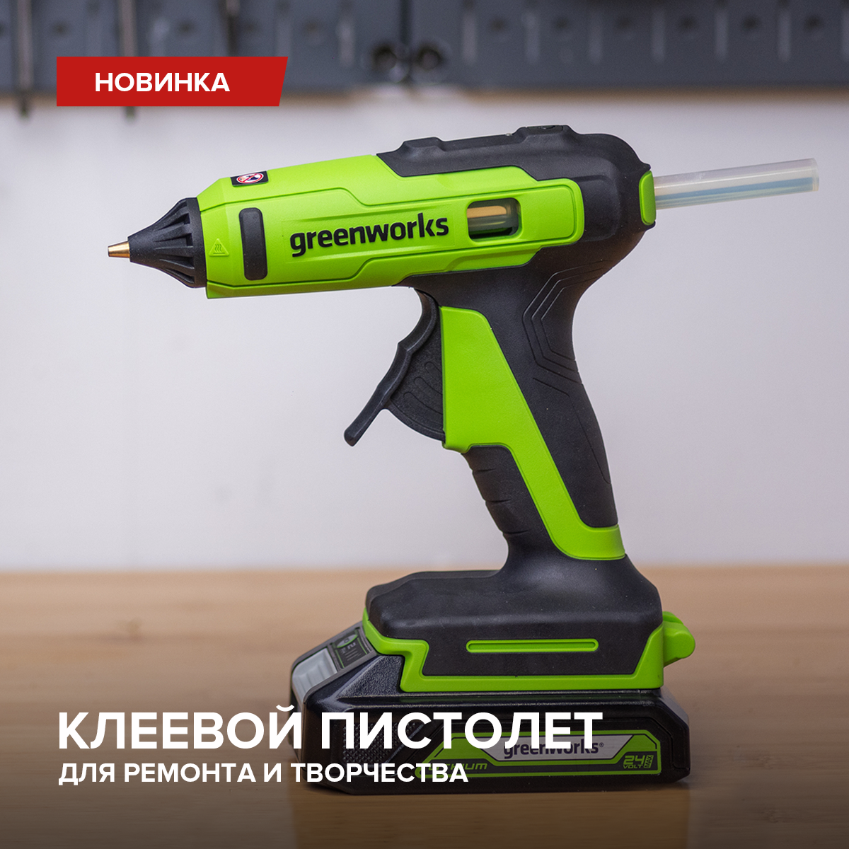 Ремонт станет проще, а творчество приятнее с аккумуляторным клеевым пистолетом Greenworks G24GLG (арт. 3502207) на платформе 24V. Инструмент обладает высокой производительностью: до 21 шт клеевых стержней 11х150 мм от одного заряда аккумуляторной батареи ёмкостью 2 Ач. Нагрев до рабочей температуры в 150°С происходит всего за 90 секунд. Защита от капель, предотвращающая протечку горячего клея, встроена в бронзовое сопло. А защита от перегрева увеличивает срок службы нагревательного элемента. Автоматический контроль за расходом энергии обеспечивает функция "Автовыключение", которая активируется автоматически, если клеевым пистолетом не пользуются более 180 секунд. Также пистолет оснащён LED-индикатором нагрева, удобным механизмом подачи клеевого стержня и подсветкой рабочей зоны. Устройство совместимо со всеми АКБ платформы Greenworks POWERALL 24V; Гарантия на клеевой пистолет составляет 3 года. РРЦ: 2990 руб. Приобрести технику поставляется без АКБ и ЗУ.