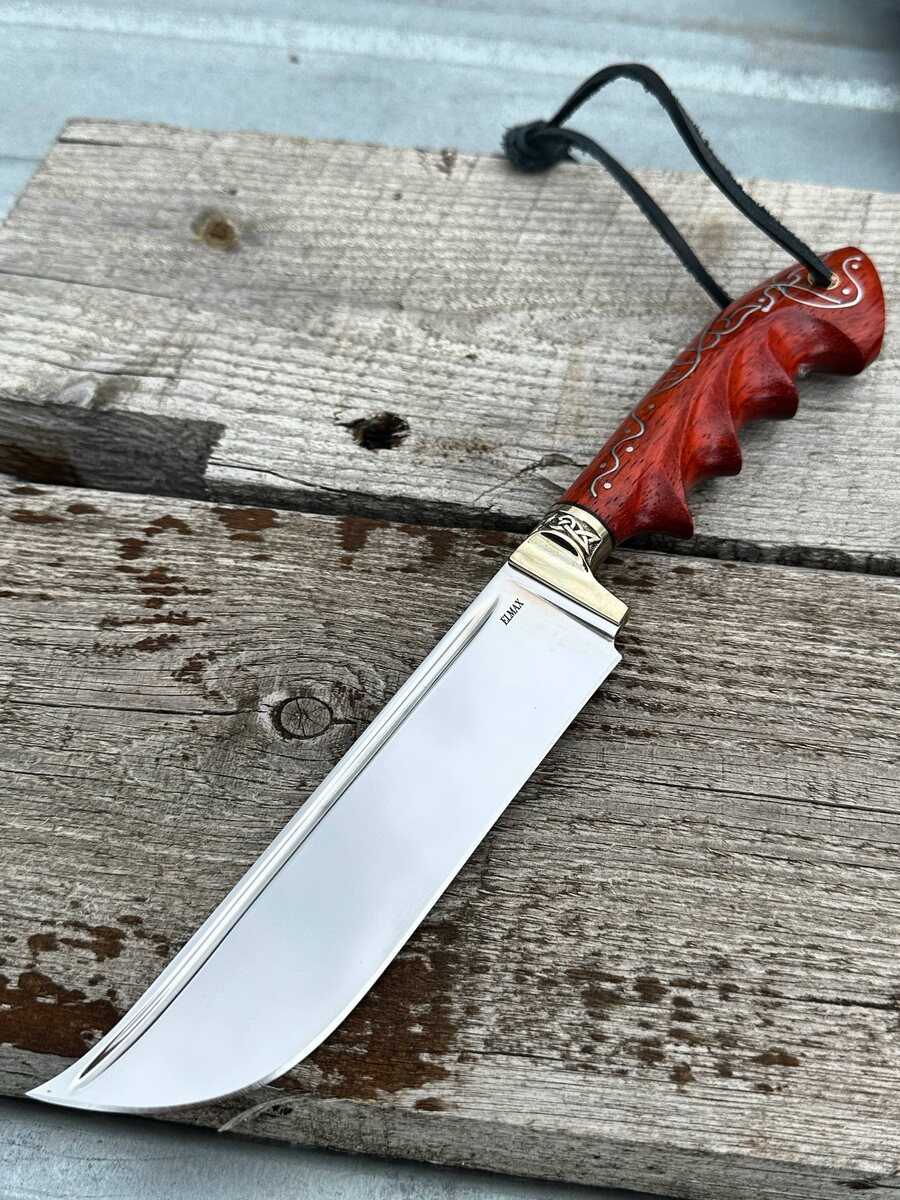 Есть в свободной продаже узбекский нож Пчак из лучшей нержавеющей стали Elmax. Сталь прочная на излом, долго держит заточку и агрессивный рез. Рукоять выполнена из черного граба и бубинги с инкрустацией. Нож заточен в бритву. Твердость клинка (HRC): 62 Цена за нож: 24.500 рублей. В комплекте идут ножны из натуральной кожи. Можем сделать формованные ножны +8000 рублей. Для заказа писать на @Nazarklinokbot или по тел +79101343831 WhatsApp/Viber