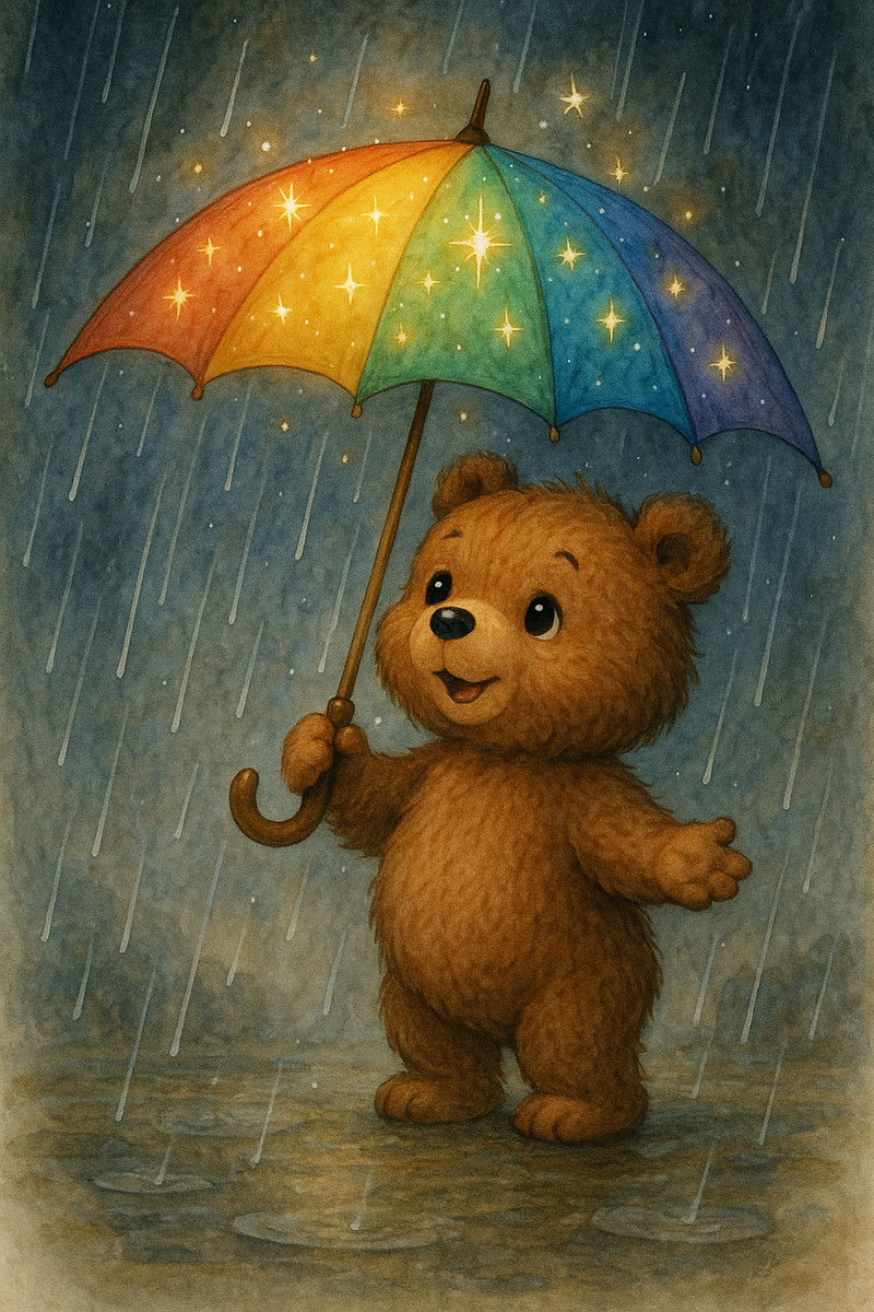 🐻 "Мишутка и волшебный зонтик" ☔️ Жил-был маленький медвежонок по имени Мишутка. Он очень любил гулять по лесу и собирать цветочки для своей мамы. Однажды, когда он шел по тропинке, небо вдруг потемнело, и начался дождик. — Ой-ой! — сказал Мишутка. — Я промокну весь! Вдруг из-за кустов выглянула пчёлка в ярком плаще. — Привет, Мишутка! — сказала она. — Возьми волшебный зонтик, он тебя укроет от дождя! Мишутка взял зонтик и открыл его — и сразу же дождь вокруг него остановился! Всё капало кругом, а он оставался сухим. Мишутка поблагодарил пчёлку и пошёл дальше. По дороге он встретил ёжика, который дрожал под деревом. — Прячься под зонтик! — предложил Мишутка. Потом они встретили зайчонка, и тоже спрятали его. Под волшебным зонтиком стало весело и тепло. Они смеялись, прыгали и даже пели песенки, пока дождь не закончился. А когда выглянуло солнышко, зонтик сам сложился и исчез — он полетел дальше искать того, кому ещё нужна помощь. — До свидания, волшебный зонтик! — закричали друзья. И