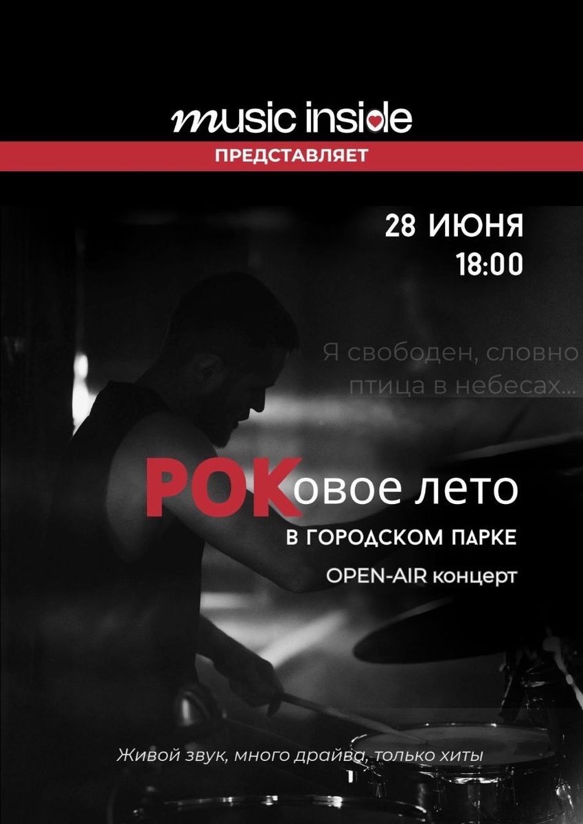 🎶28 июня с 18:00 до 19:00 в Городском парке Обнинска танцевальная программа «РОКовое лето» от музыкального пространства «MusicInside» ко Дню молодежи. Это open-air концерт, где звучат хиты, знакомые с первых аккордов. Вход свободный. 👍 Подписаться | Прислать мероприятие