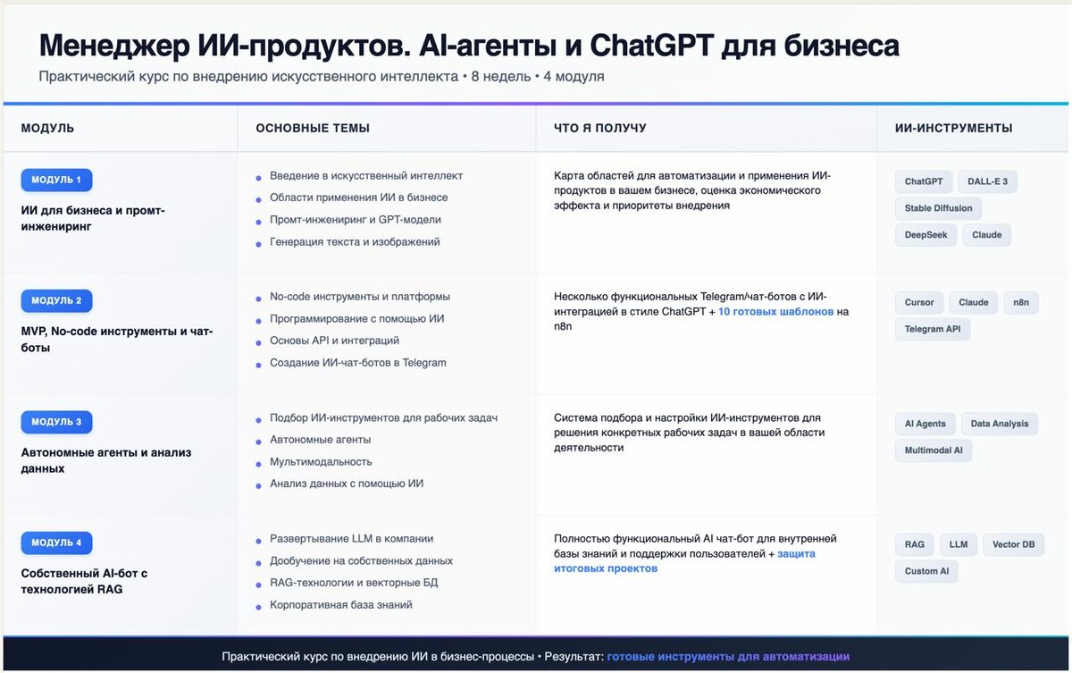 Напоминалка. Сегодня в 20.00 мск начинается курс «Менеджер ИИ-продуктов. AI-агенты и ChatGPT для бизнеса».