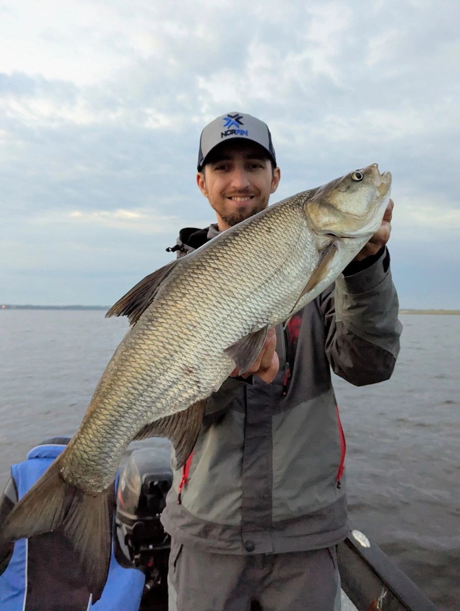 Быстро заглушились, поймали тишину на борту, и в ход пустили тэйлспиннеры. На эмоциях от происходящего вокруг не сразу поняли, что вести надо как можно ближе к поверхности, а под нами глубина 11 метров. Уменьшение размера Басары до 8 гр. сразу дало результат!