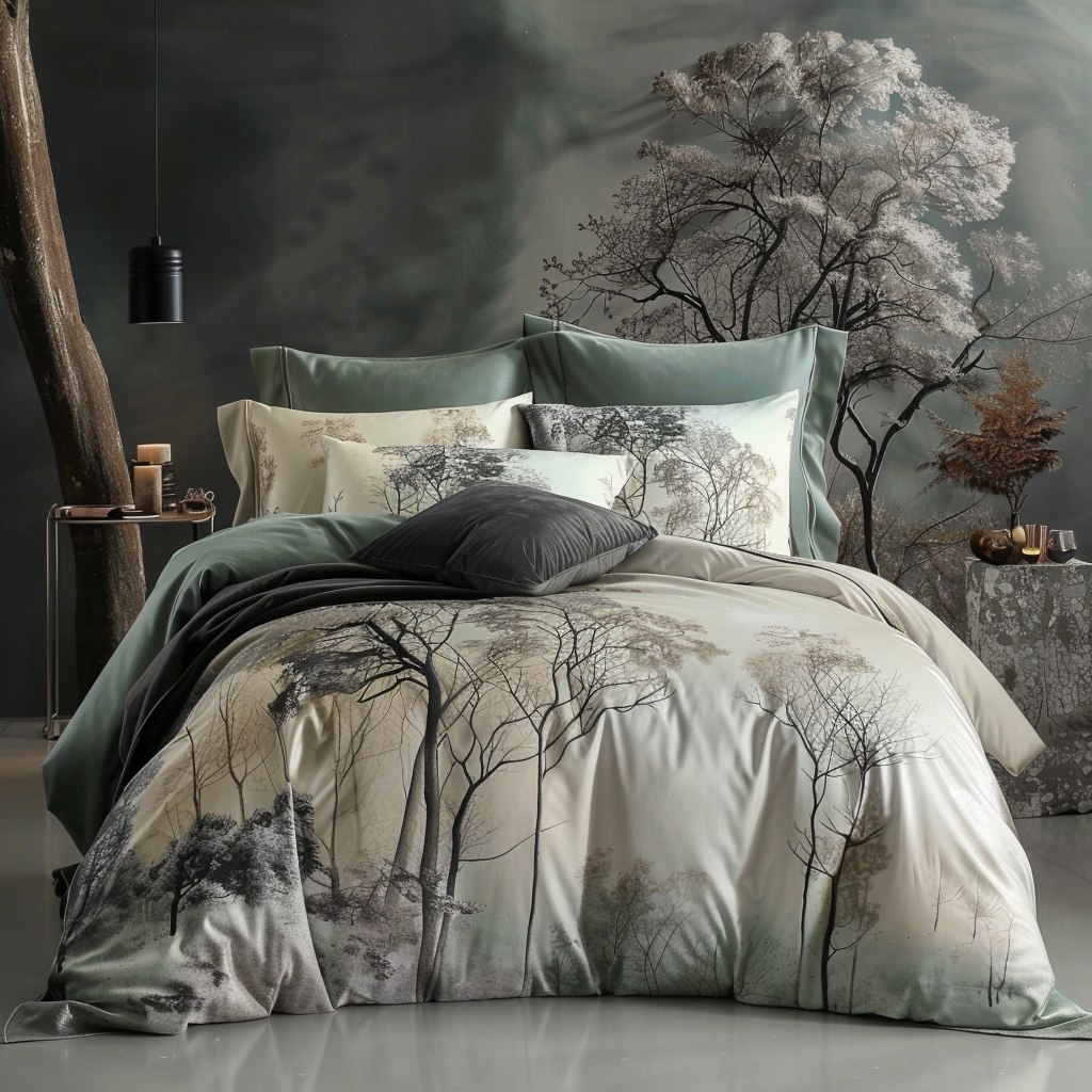 Стоимость реактивной печати существенно дороже. Поэтому мы используем ее для белья класса Премиум, на сатине из хлопка, с многоцветными и композиционно сложными рисунками, сочетаем большое панно на пододеяльнике, маленькое на наволочках и вспомогательный рисунок компаньон. Пигментную печать применяем для более экономичных вариантов, например, бязи. Сравните фото 3 и 4.