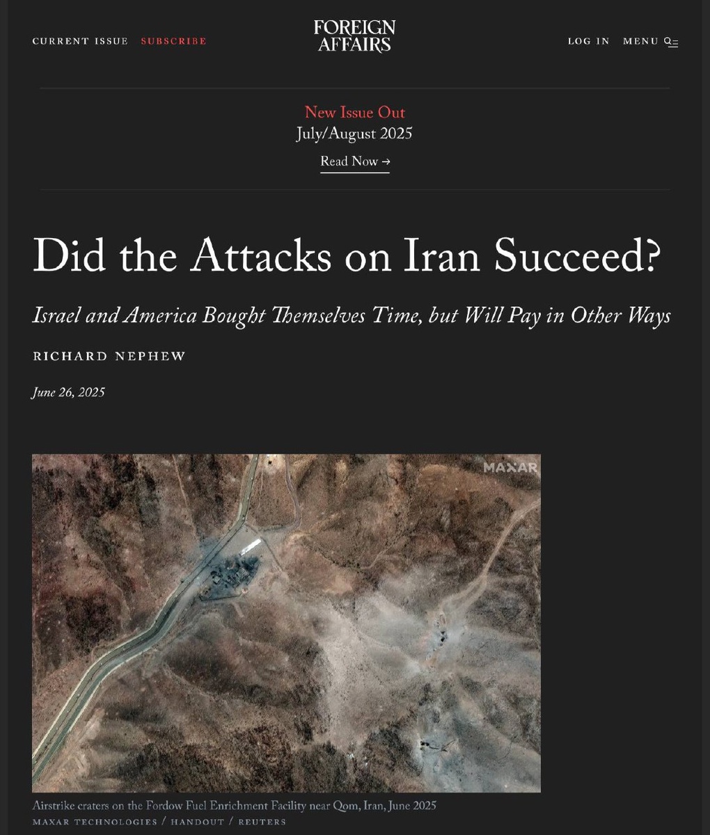 ⚡️Иран сохранил потенциал развития ядерной программы, несмотря на удары США, — Foreign Affairs. Заря | Новости - Подписаться