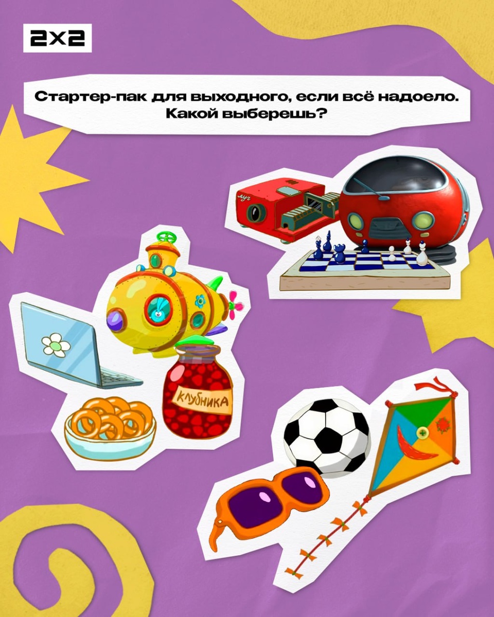 Как проведёте выходной, чтобы почувствовать вкус жизни? Варианты: — исследовать океан на субмарине с запасом вкусняшек; — запрыгнуть в машину времени, прихватив проектор и шахматы; — отдать должное старому доброму активному отдыху на природе