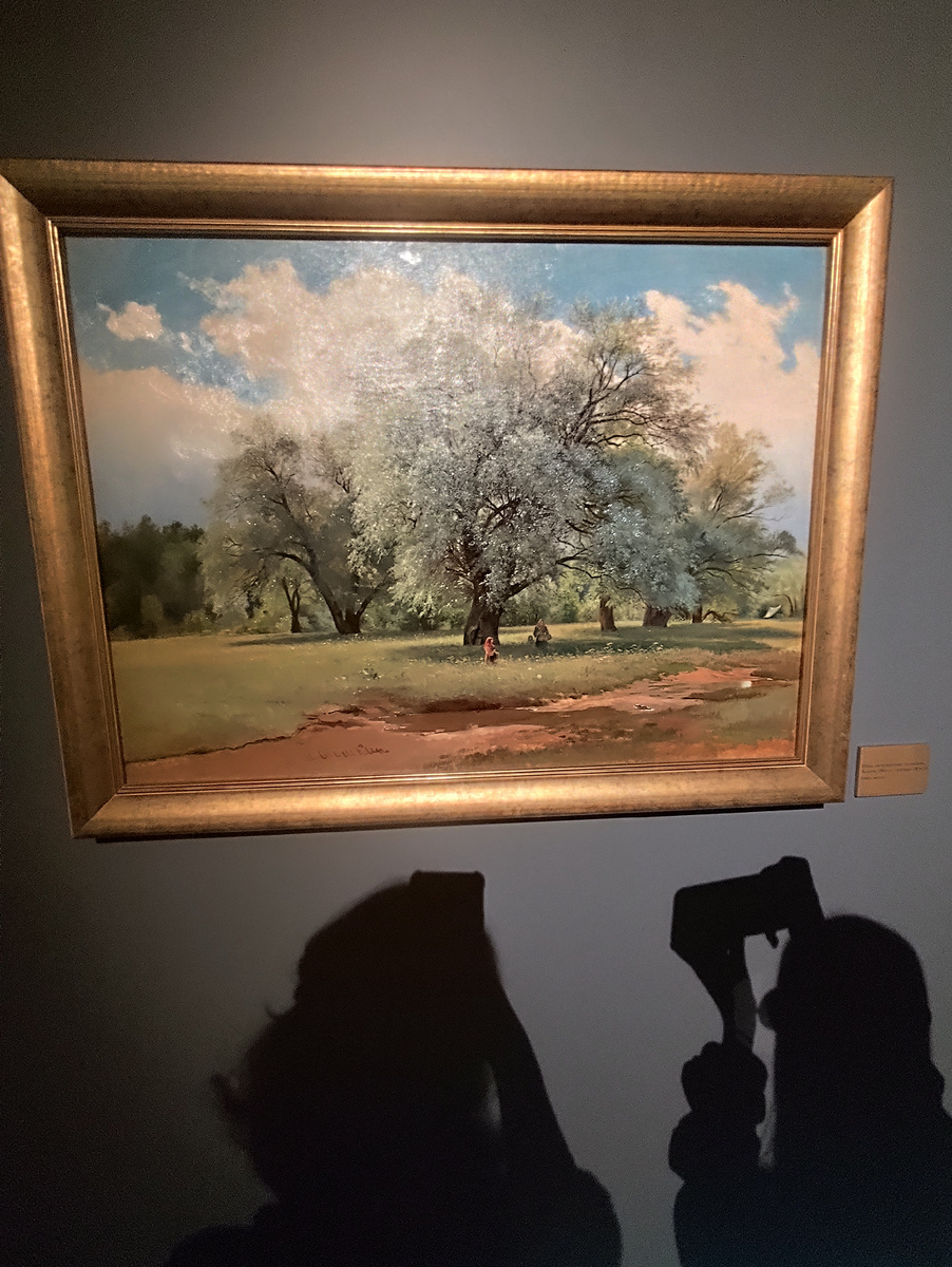 Звенигородский манеж умеет растянуть три экспоната на один кв га, увлекая посетителей подсветкой, музыкой и атмосферой, но тут обратная ситуация: на небольшой площади собрали картины, людей, коней, где они, соббсна, все и смешались. Минус: мне не хватило простора для просторов пейзажей Шишкина. Плюс: пейзажи и рамы к ним. Правильно говорят художники: картину делает рама, а рама делает выставку. Рамы для пейзажей - сами по себе произведения искусства, они, как кружевные наличники, позволяли заглянуть в окно и увидеть леса, поля, деревеньки... (Шишкин глазами нейросети по версии звенигородского Манежа- тут Мне всегда становится тепло от добротных рам мореного дуба, а не скучного однообразного пластикового пакета. Картины в таких рамах выглядят внушительными, основательными и незыблемыми: сколько бы людей не прошло мимо них, сколько суеты не случилось, трава пробьется из-под асфальта,а дубы дадут новую поросль. Выставка закроется в это воскресенье, кто рядышком - можно посет