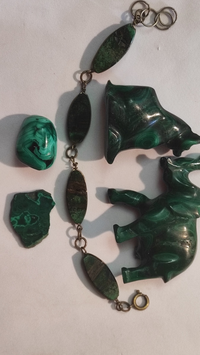 Вот кучка предметов... Я так думаю (Мимино) что только один камушек с Урала: А может и два... Разве в Африке медведи водятся? :0) А вот (имхо) выращенные малахиты: Пластина... Не кажется ли что это несколько "спеченых" кусочков? А это - донышко шкатулки... Тоже из кусков? Но какие-то "бирюзовые"... Нет? А это спинка слона (см.флто выше) (фото пластины ) А вот из набора: Скажу, что в Индии малахит считается драгоценным камнем. Покупайте малахит! И ждите что индусы станут богаче китайцев. Вот тут вложения и сыграют... :0)