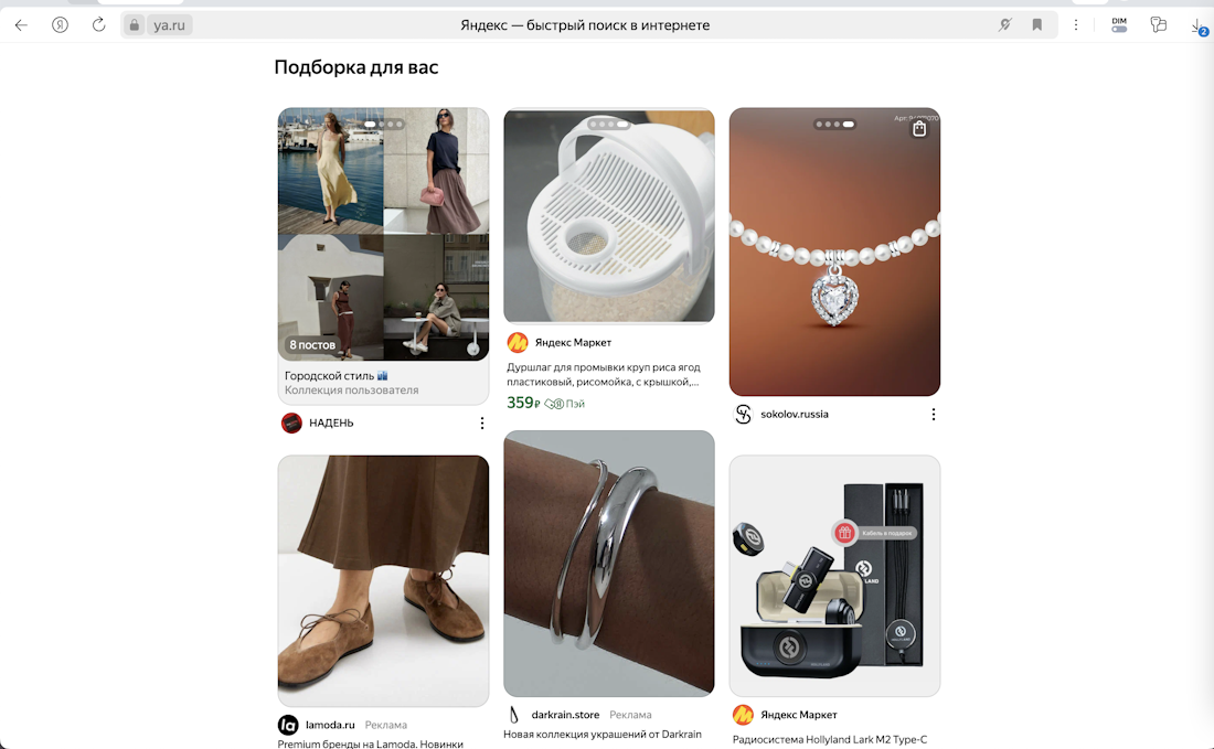 Инфлюенсеры и пользователи смогут делиться подборками товаров и образов на главной Яндекса