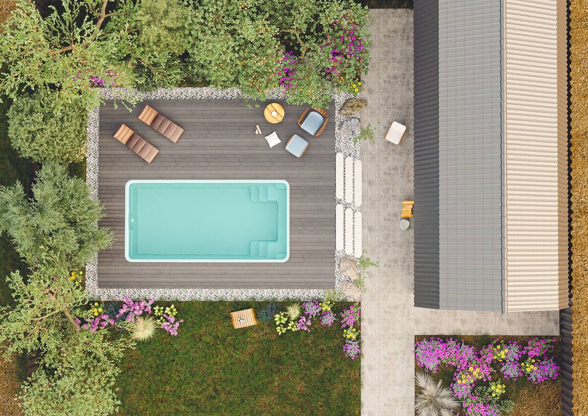 ЭРИ 700 — эстетика и комфорт в идеальных пропорциях. Модель оптимальна для активного плавания и семейного отдыха на небольшом участке.
