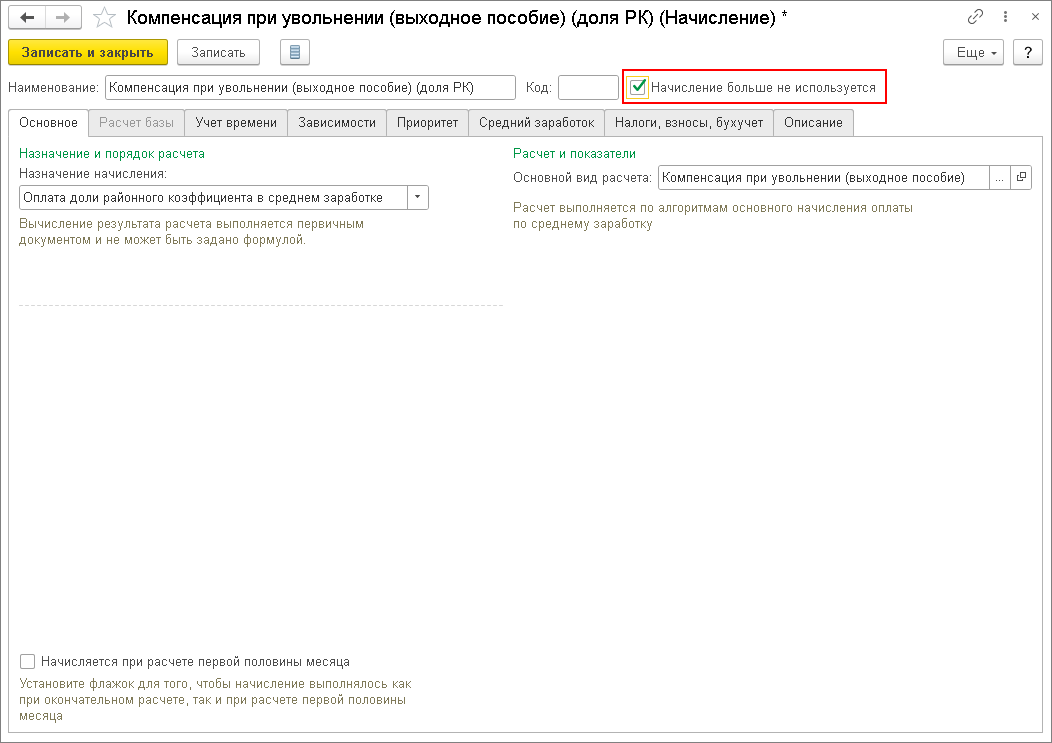 Как в "1С:ЗУП 8" (ред. 3) отключить выделение долей РК и ПН при расчете среднего заработка?