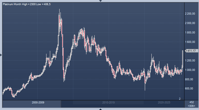 Стоимость платины достигла наивысшего уровня с 2014 года, что обусловлено опасениями по поводу поставок и спекулятивными покупками.