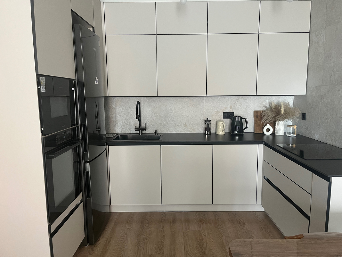 В этой статье поделюсь нашим опытом выбора, заказа и установки кухни. Хотелось, чтобы она была готова как можно быстрее. Поэтому замерщик кухни к нам приехал сразу в день приемки квартиры. Мы выбрали Кухонный двор. Считали нам и в Кухни Мария, и в Like kitchen, и в Стильных кухнях и еще двух менее известных фирмах. Кухонный двор понравился нам по следующим причинам: Мы уже знали, чего хотим. Просто оказалось, что иногда люди приходят в салон даже без каких либо представлений о своей будущей кухне) И этот проект я рассылала с конкретным запросом - фасад МДФ, покрытие софт-тач и наш рисунок. Итак, при первом посещении нам насчитали кухню примерно на 500т.р. Вот эскиз, который сделала менеджер. В Стильных кухнях и Kitchen like за такой же проект вышла примерно одинаковая сумма - порядка 700т.р. В Кухни Мария мы считали за месяц до этого, на 1 млн.р.😳 Да, из того проекта мы убрали верхнюю часть кухни с одной стороны (порядка 1 метра верха кухни заменили на пустую стену, оставили м