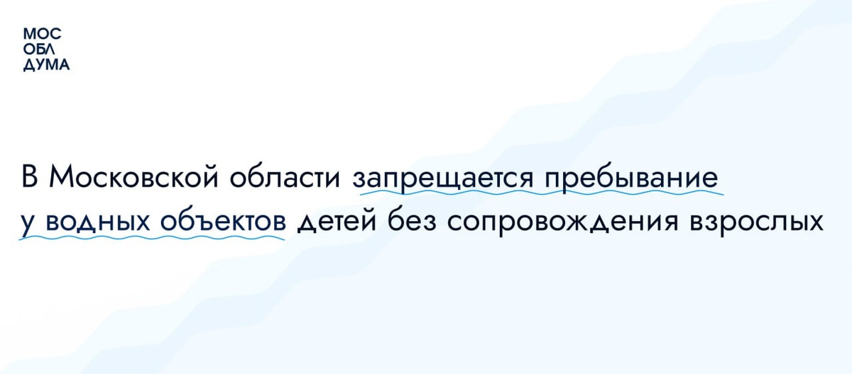⚡️В ходе 115-го заседания Мособлдумой принят закон, согласно которому запрещается пребывание на водных объектах детей до 18 лет без