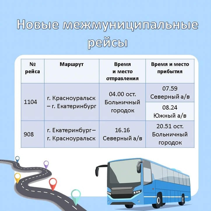 Поездка в Екатеринбург станет удобнее Как сообщает администрация Красноуральска, с 17 июня возобновлено движение по межмуниципальному маршруту № 1104 Красноуральск - Екатеринбург (Южный автовокзал). Отправление из Красноуральска от остановки Больничный городок − ежедневно в 04.00, прибытие в Екатеринбург: Северный а/в - 07.59, Южный а/в - 08.24. Билеты на рейс можно приобрести в кассе на остановке «Больничный городок», режим работы с 08.00 до 13.00 ежедневно. Кроме того, введен дополнительный рейс по маршруту № 908 из Екатеринбурга в Красноуральск: отправление в 16.16 от Северного автовокзала. Источник
