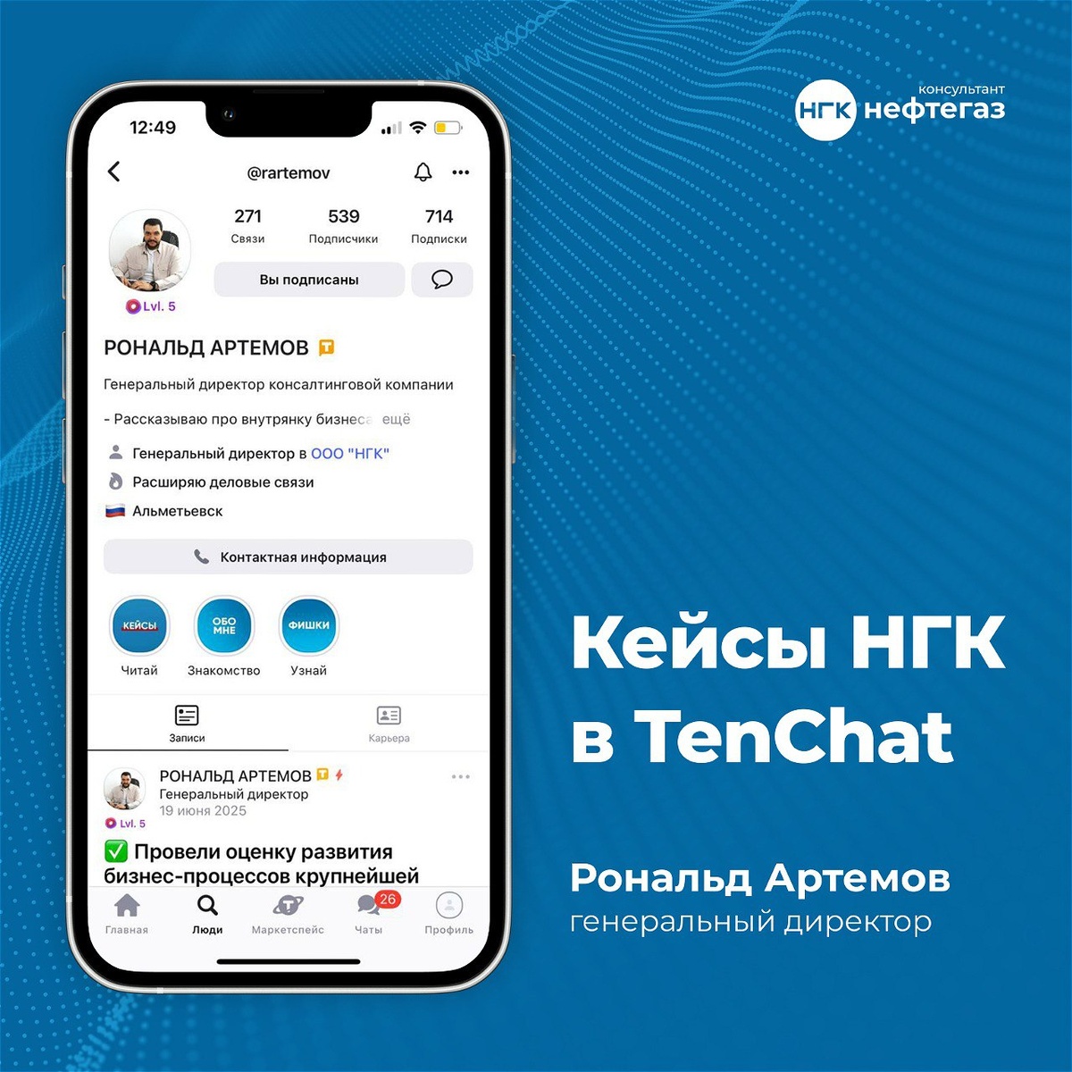 Больше 🚀 кейсов НГК в TenChat генерального директора — Рональда Артемова