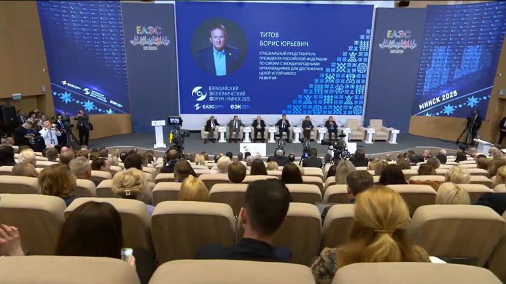 В рамках стратегического блока Евразийского экономического форума – главного конгрессного мероприятия Евразийского экономического союза – прошла панельная сессия «Диалог межгосударственных объединений: сопряжение экономических потенциалов и углубление торгово-экономического сотрудничества». Модератором сессии выступил Борис Титов, специальный представитель Президента Российской Федерации по связям с международными организациями для достижения целей устойчивого развития. Участие приняли: ● Наталья Петкевич – Заместитель Премьер-министра Республики Беларусь, Председатель Совета Евразийской экономической комиссии;