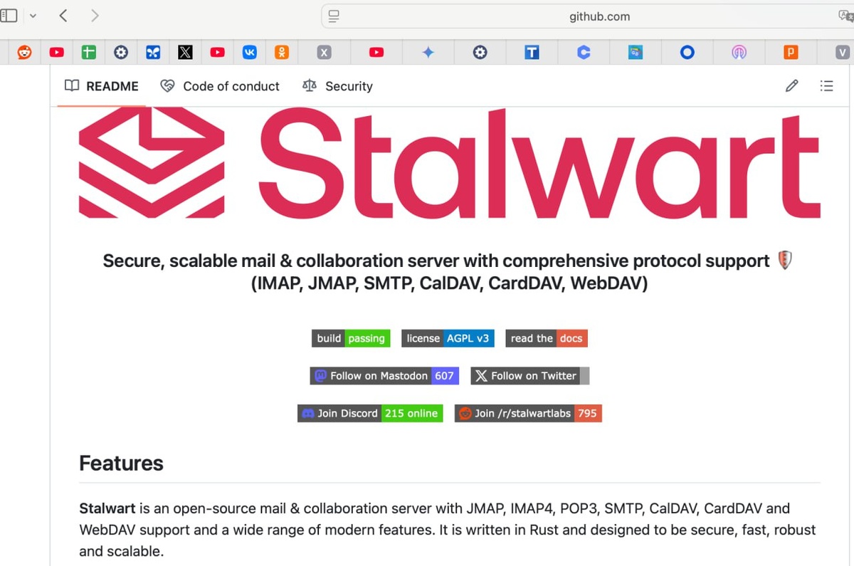 Stalwart — это мощный open-source сервер для почты и совместной работы, который поддерживает все ключевые протоколы: JMAP, IMAP, POP3, SMTP, CalDAV, CardDAV и WebDAV. Написан на Rust. Проект активно развивается: 8.9k звезд на GitHub, 427 форков, 30 контрибьюторов. Есть веб-панель для управления, поддержка кучи хранилищ (RocksDB, PostgreSQL, S3) и спонсорство через NLnet и подписки от $5/месяц за Enterprise-лицензию. Сервер напичкан вкуснятиной: умные фильтры от спама с ИИ, защита от фишинга, шифрование (S/MIME, OpenPGP), автоматические TLS-сертификаты и блокировка подозрительных IP. Плюс гибкость: от многоязычного поиска до скриптов Sieve и интеграции с Kubernetes. Управлять легко через веб-интерфейс с реальной статистикой и настройками. Сообщество активно на Discord и Reddit, а если что-то сломалось, можно писать в GitHub Discussions. Русский ИТ бизнес