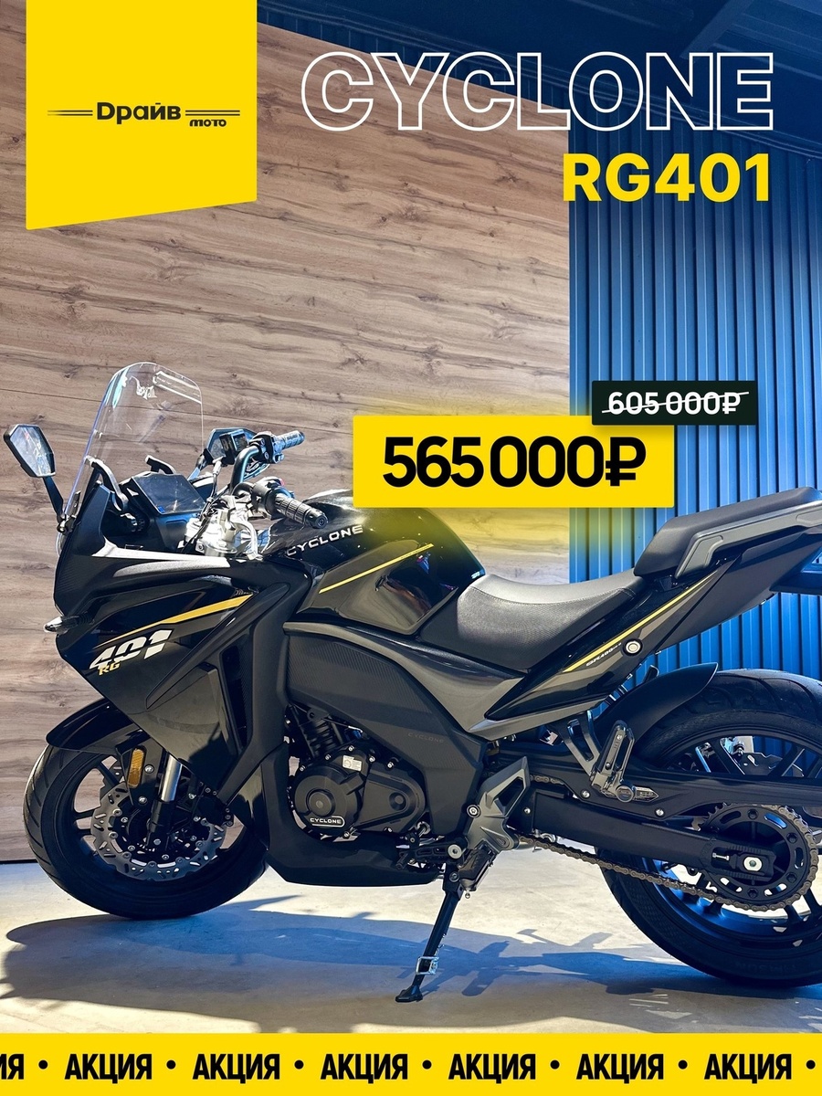 Ищешь стильный и технологичный спортбайк с ярким характером? CYCLONE RG401 — это не просто мотоцикл, а готовый ответ на вызов города и трассы. Сейчас он доступен по сниженной цене: 565 000 ₽ вместо 605 000 ₽ Мотоцикл новый, в наличии. Можно сразу забрать — или оформить в рассрочку. Условия рассрочки на 36 месяцев: — Без процентов — Без первоначального взноса — Ежемесячный платёж — от 15 694 ₽ Почему стоит выбрать RG401: Подходит для города, трассы и спортивного стиля. Пиши в сообщения: vk.me/drivemoto_yar — всё покажем, расскажем, оформим. CYCLONE RG401 — когда мощность сочетается со стилем.