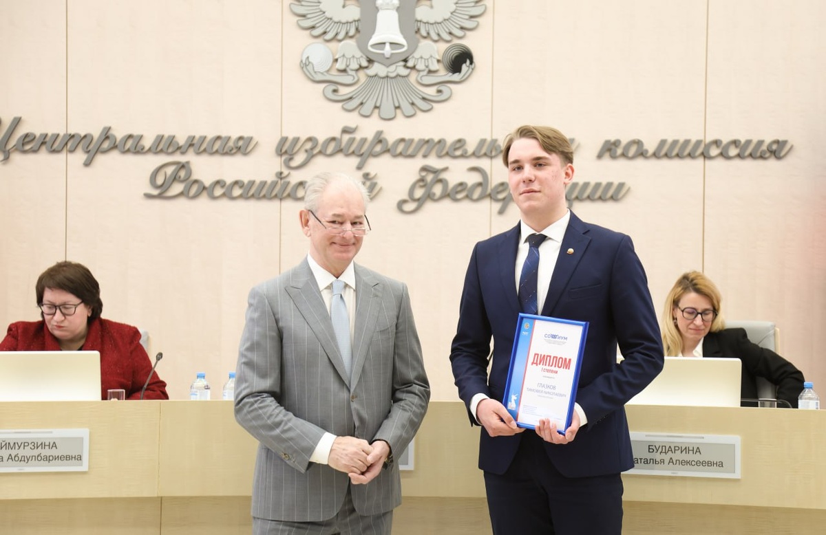 🦉 Победитель «Софиума» Тимофей Глазков, 11-й класс Регион: Хабаровский край Образовательная организация: МБОУ лицей «РИТМ» Наставник: Зуева Ольга Брониславовна, учитель истории Фото: РЦОИТ при ЦИК России #простоовыборах #софиум #золотойзапас