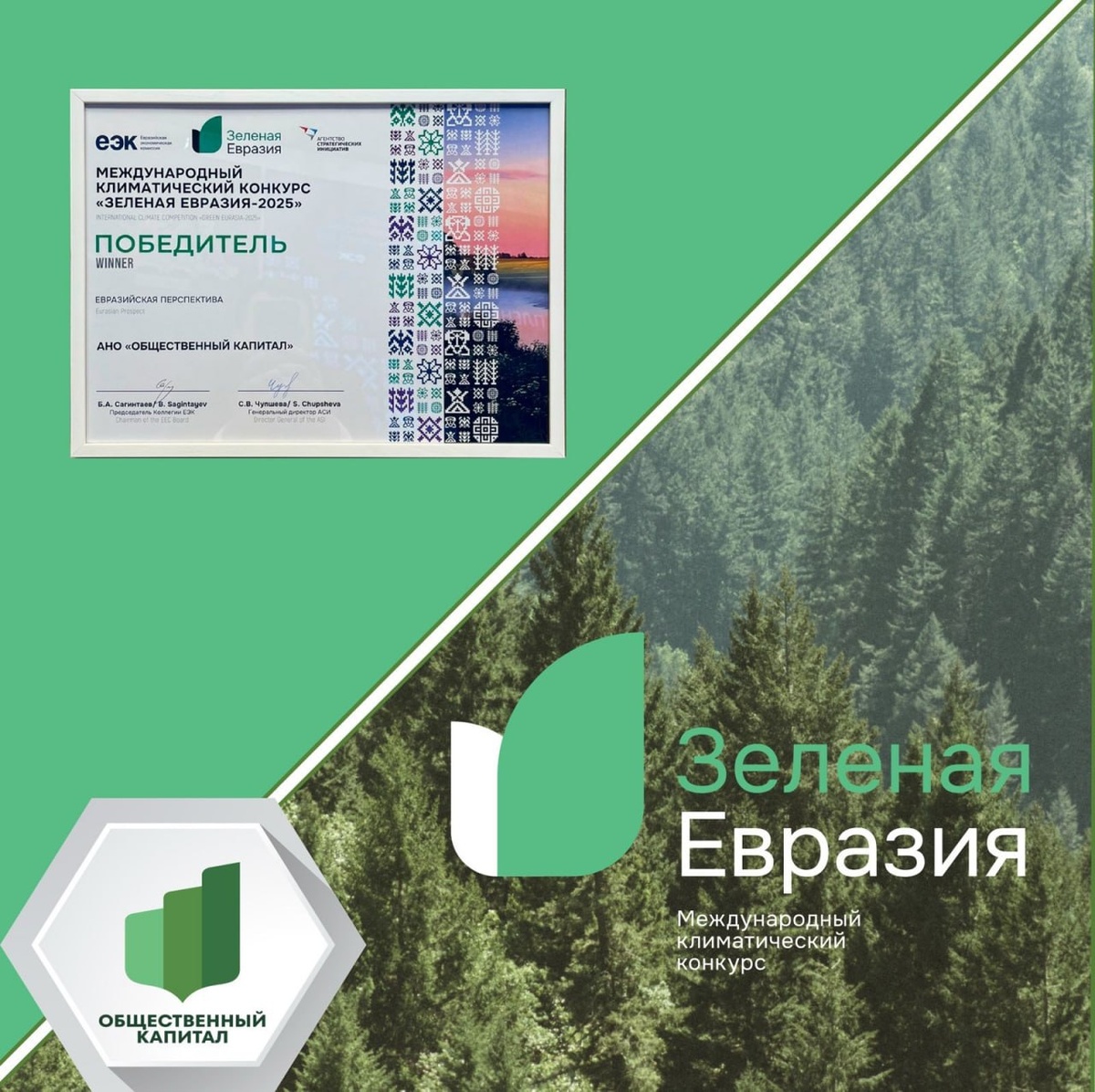 В Минске в рамках Евразийского экономического форума подвели итоги Международного климатического конкурса «Зеленая Евразия». АНО «Общественный капитал» стала призером в номинации «Евразийская перспектива» за разработку Стандарта общественного капитала бизнеса, как проекта с высокой международной кооперационной составляющей. «Мы гордимся тем, что Стандарт общественного капитала бизнеса признан экспертным жюри международного конкурса «Зеленая Евразия». Это подтверждает, что мы двигаемся в правильном направлении. Сейчас мы начинаем активную работу по внедрению Стандарта в регионах России, но считаем, что у него есть большой международный потенциал, поэтому в будущем планируем налаживать сотрудничество с зарубежными партнерами из стран БРИКС» - генеральный директор АНО «Общественный капитал» Асият Багатырова. ⚡️ В 2025 году на участие в конкурсе «Зеленая Евразия» поступило порядка 300 заявок из 16 стран мира.