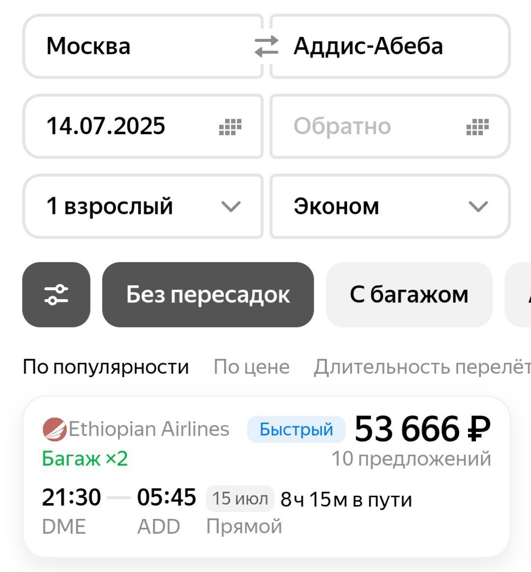 Ethiopian Airlines увеличивает частоту рейсов из Домодедово в Аддис-Абебу до 5 раз в неделю Авиакомпания Ethiopian Airlines уже с начала следующей недели, с 30 июня, как мы ранее писали, расширяет полетную программу на маршруте Москва (Домодедово) – Аддис-Абеба. Частота рейсов увеличивается до 5 раз в неделю. Добавлены рейсы по понедельникам (из Москвы) и воскресеньям (из Аддис-Абебы). ➡️Актуальное расписание вылетов из Москвы (Домодедово) будет таким: понедельник, вторник, четверг, пятница, суббота. ➡️Расписание из Аддис-Абебы: понедельник, среда, четверг, пятница, воскресенье. ➡️Актуальная стоимость перелета – от 54 тыс. руб. в одну сторону с багажом. @atorus