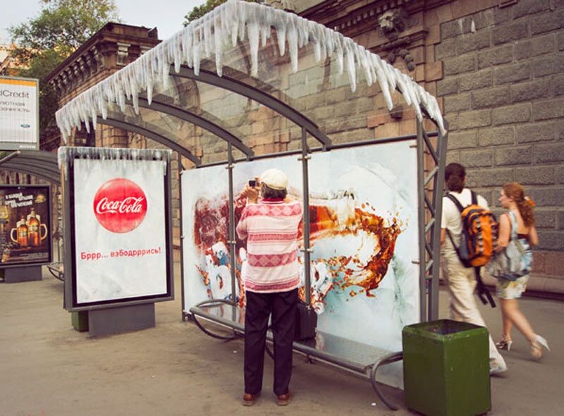 3D-эффекты и иллюзии: Используйте объемные фигуры или оптические иллюзии. Например, гигантские 3D-объекты, выходящие за рамки баннера, или пешеходные переходы с эффектом глубины.