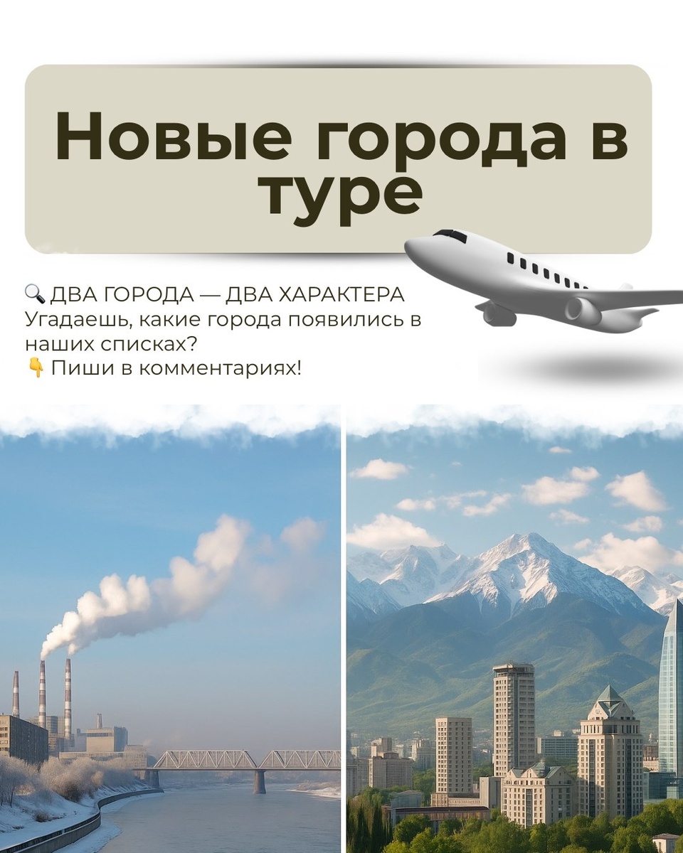 🔍 ДВА НОВЫХ ГОРОДА в нашем маршруте — угадаете какие? ⠀ 📍 Первый — город с суровым климатом и длинной зимой. Здесь привыкли не жаловаться на холод и быстро переходить к делу. Он стоит на реке, богат нефтью, а люди — на редкость тёплые и прямые. ⠀ 📍 Второй — один из самых быстроразвивающихся городов региона. Тут смешались советское прошлое, восточная культура и современная архитектура. Вид на горы, хрустящий воздух по утрам и особая, узнаваемая речь местных жителей. ⠀ 🚐 Уже скоро мы приедем именно туда. Как думаете, о каких городах речь? 😉 Пишите в комментариях — кто угадает первым?