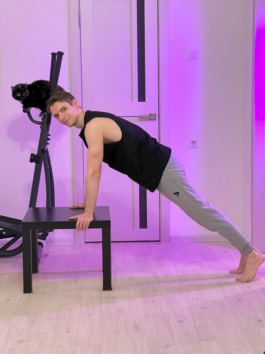 🔸Как усложнить? Делать на одной руке/ноге, добавлять динамику.