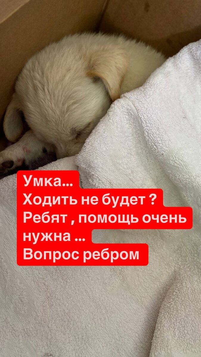 Ох утро не доброе , не такие мы новости хотели ! Умка врядли пойдет (( вот так сказали и предложили усыпить ..а как усыпить ? Рука не поднимется ! То что это сделал с ней человек , это понятно .. если бы машина наехала от такой малышки ничего не осталось бы … А так выкинули в канаву , думали умрет ,но чудо спасло ее .. но куда двигаться дальше ? Умка пока в клинике в Батайске , сделали запрос в московские фонды ,просим помощи ее забрать , помочь , спасти … Друзья , помогите репостом ,Умке нужно найти спасение …
