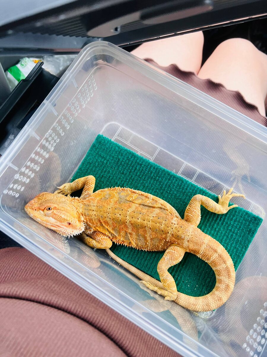 Ну и, собственно, вот этого пирожочка я привезла с Рептилиума. Изначально ехала туда с расчётом на то, что смогу выбрать там себе агаму. Давно уже её хочу, и вот мечта сбылась. Правда, хотела взять себе малявку, но влюбилась в этого подростка😁 Ему 11 месяцев, имя пока ещё не придумала. Мальчик крупный, и ещё подрастёт. Мой террариум ему сейчас практически впритык, поэтому буду либо заказывать размер больше, либо вообще собирать сама из дерева. Дома теперь, конечно, весело. Хамелеон пытается сожрать агаму, а агам пытается сожрать черепаху, и периодически кошмарит кота🥲 Там же накупила ещё тараканов пауку и новую партию сверов для ящеров. Спим как на пруду теперь, под пение сверчков😄 Ещё взяла коврик для агамыча и керамическую кормушку/поилку в виде листа монстеры. Очень жалею, что не купила там УФ-лампы. Пришлось ломать голову и искать хорошие уже дома в интернете. Осенью планирую приехать ещё раз и затариться по полной программе! #Рептилиум