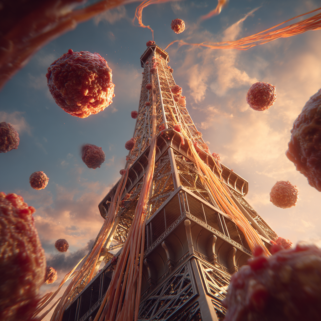 3. Гигантская порция спагетти с фрикадельками, падающая на Эйфелеву башню