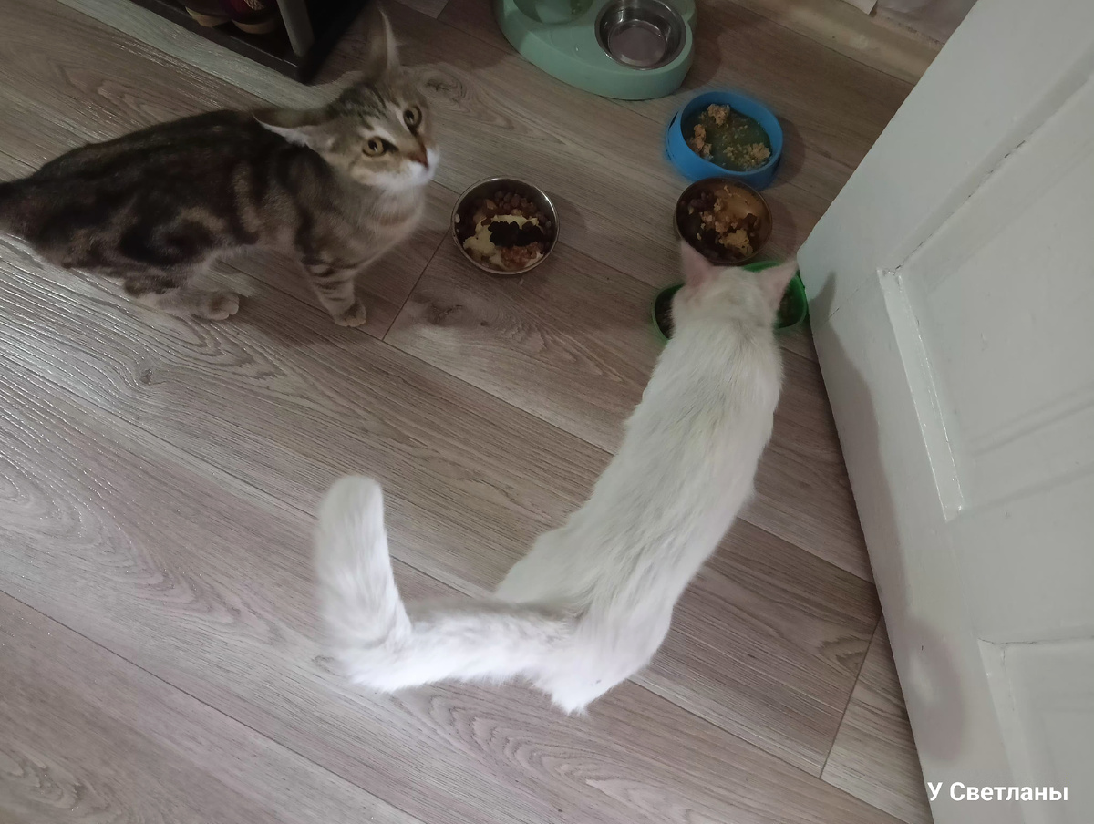 Вот они, уже и Васька старший по запаху прибежал с квартиры, ну с той квартиры, где живёт его жена, правда, мы её не видели никогда, на свадьбу нас не приглашали. Вот так и живём.