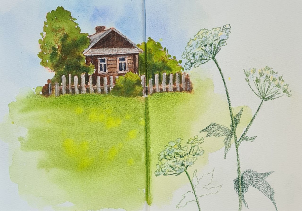 Продолжу рассказ про свой путь в рисовании в другой раз. Мы сейчас все в переезде. Вот удалось заскетчить домик в старом жилье, а цветочки уже в новом доделала карандашами. Лето в самом разгаре и очень хочется вот в эту свою картинку #акварель #карандаши