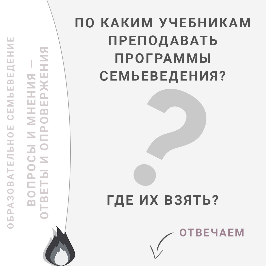Важный момент состоит в том, что если в перспективе появятся единые (точнее говоря — общефедеральные типовые/примерные рекомендованные) программы семьеведения для разных уровней образования и разных возрастов, вот тогда, в принципе, могут потребоваться единые общефедеральные пособия (не учебники) по семьеведению для обучающихся, связанные с этими едиными программами. Что, впрочем, не обязательно. При этом, нет противоречия в том, что единые программы могут допускать использование уже существующих пособий, отвечающих стандартным требованиям к такого рода изданиям.