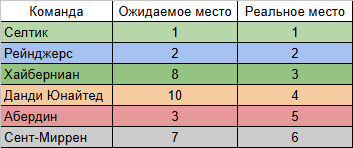 Перед началом сезона я суммировал прогнозы экспертов и свои собственные и вывел некую среднюю ожидаемую позицию команд.