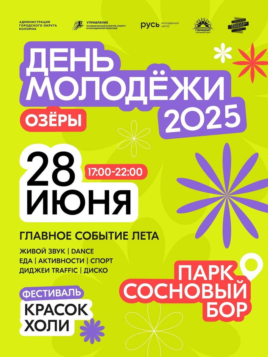 ДЕНЬ МОЛОДЕЖИ В ОЗЁРАХ❤️ День, которого мы все так ждали, скоро! Приглашаем тебя на большой праздник: самый громкий и яркий — ДЕНЬ МОЛОДЕЖИ. Будем танцевать и веселиться, слушать музыку и наслаждаться атмосферой! Еда, активности, диджеи и яркая точка праздника — фестиваль красок холи! Запомни это лето! Приходи 28 июня в Сосновый Бор❤️ ⏳17:00-22:00 #Деньмолодежи #ГородскойОкругКоломна #Коломна #КоломнаОзёры #Подмосковье #НашеПодмосковье #Московскаяобласть