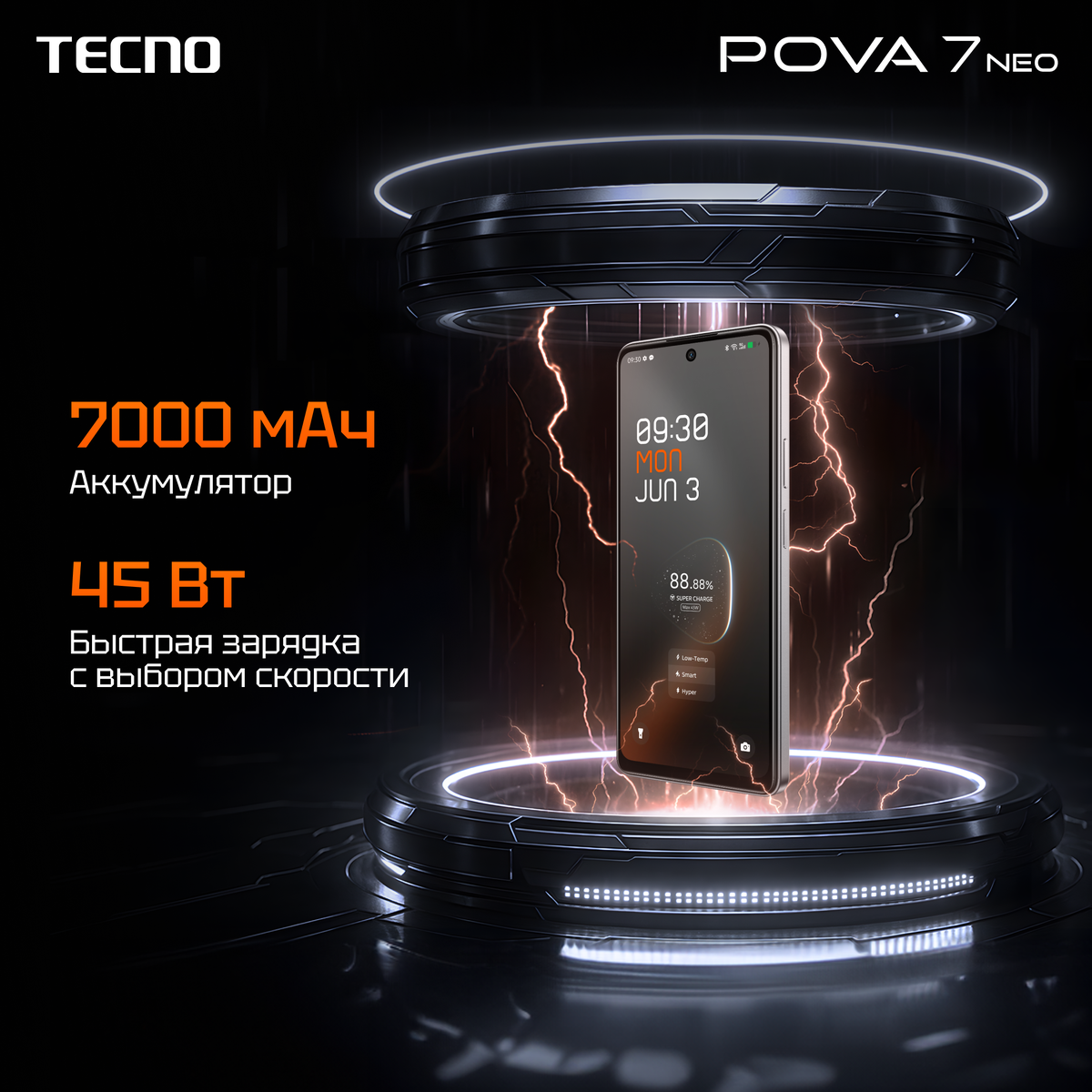 Главная фишка POVA 7 Neo – аккумулятор на 7000 мАч, который обеспечивает несколько дней работы без подзарядки даже при активном использовании. Даже с 1% заряда смартфон: