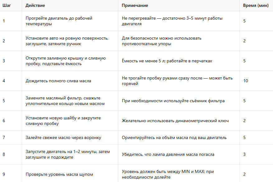 При замене масла всегда учитывайте необходимость замены масляного фильтра — это влияет на итоговый объём заливаемой жидкости.