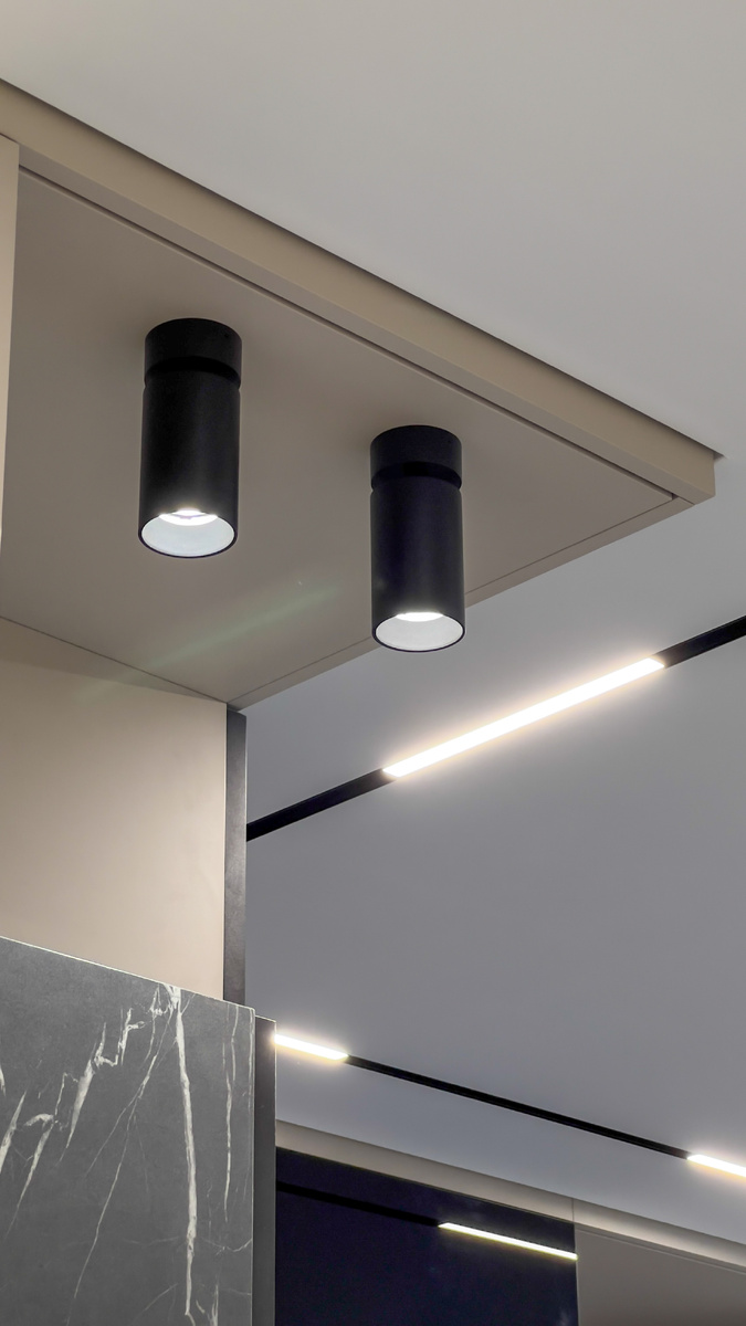 Правильное освещение может преобразить натяжной потолок, сделав его не просто функциональным элементом, а ключевой частью интерьера. Разбираем все нюансы выбора и монтажа встроенных светильников — от классических решений до высокотехнологичных новинок. Плюсы: ✔ Компактность ✔ Равномерное освещение ✔ Подходят для любых помещений Минусы: ❌ Ограниченная мощность (обычно до 10 Вт на 1 светильник) Совет: Для кухни или ванной выбирайте влагозащищенные модели (IP44 и выше). Где использовать: - Контурная подсветка - Создание «парящего» эффекта - Подсветка многоуровневых конструкций Типы лент: - SMD 2835 — стандартная яркость - SMD 5630 — повышенная яркость (+30%) - RGB — смена цвета Особенности: - Гибкость (можно менять расположение светильников) - Подходят для высоких потолков - Лучший вариант для зонирования Минус: Требуют дополнительного пространства за полотном. Плюсы: ✔ Мягкий рассеянный свет ✔ Современный дизайн ✔ Экономия энергии Где лучше смотрятся: - Офисы - Кухни - Гостиные в стиле