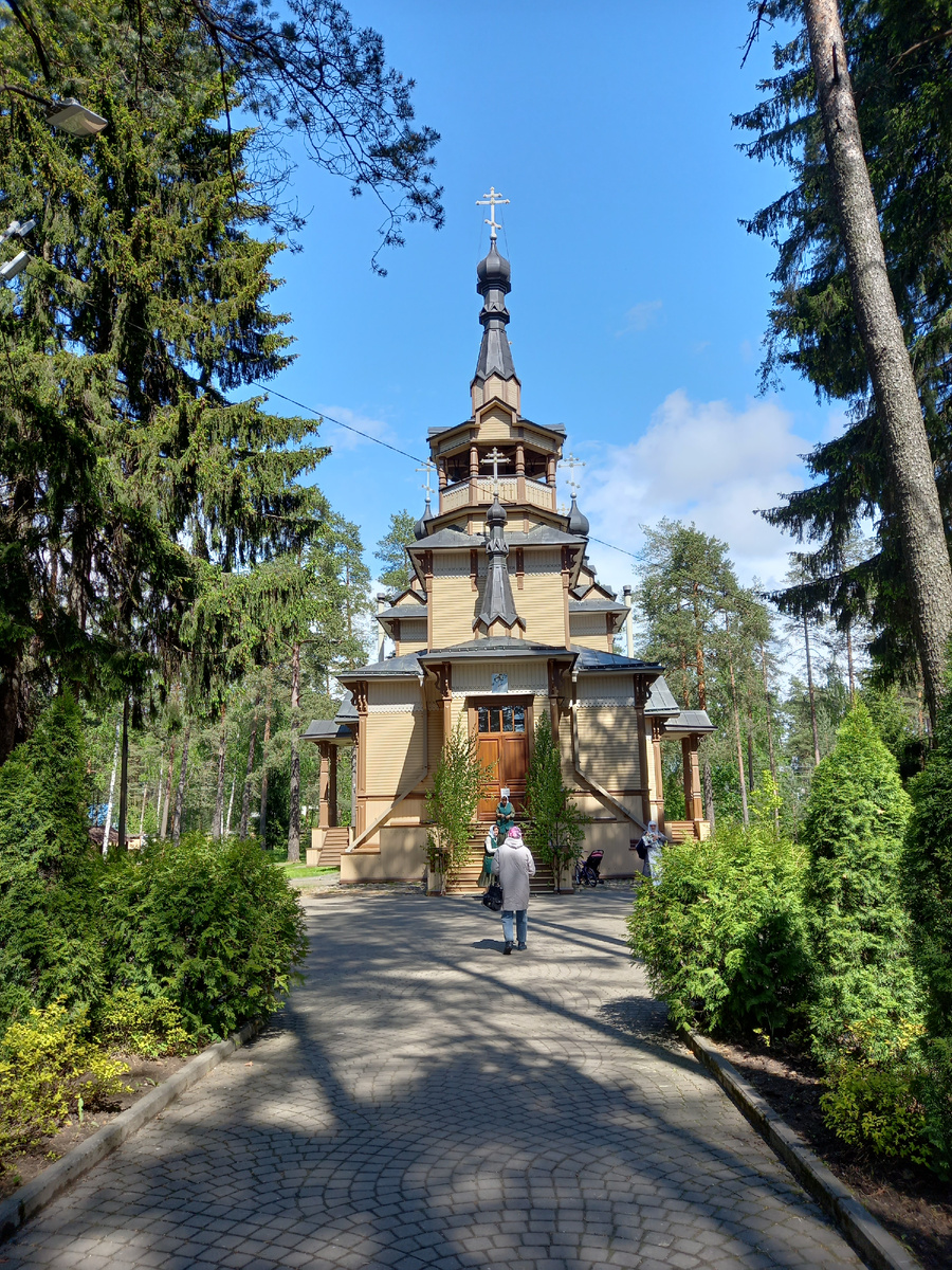 Нет, храм не из песка, деревянный теремок, очень красивый, уютный, радушный. Вот думаю, питерцы народ избалованный, храмами их не удивишь, но что-то мне подсказывает, что даже они не все знают, что есть такое чудесное, можно даже сказать, сказочное место на их богатой историей земле. Так что, буду вас знакомить. Разрешите представить: Храм Преподобного Серафима Саровского в поселке Песочном, что на окраине Санкт-Петербурга. Как меня сюда занесло? Открываю карты: в шаговой доступности расположено аж два онкологических центра, где довелось полечиться и мне. Вот так судьба привела в Песочный и в этот чудесный храм. Мне одной кажется, что храм похож на голову былинного богатыря? Думаю, не надо иметь богатую фантазию, чтобы это увидеть. И хоть он и выглядит достаточно молодо, этому старцу уже более ста лет! Одно время в храме служил почитаемый питерский Святой Иоанн Кронштадский. До 1937 года храм был действующим... Восстанавливать взялись в 90-е - 2000-е годы. Восстановили так, что выгля