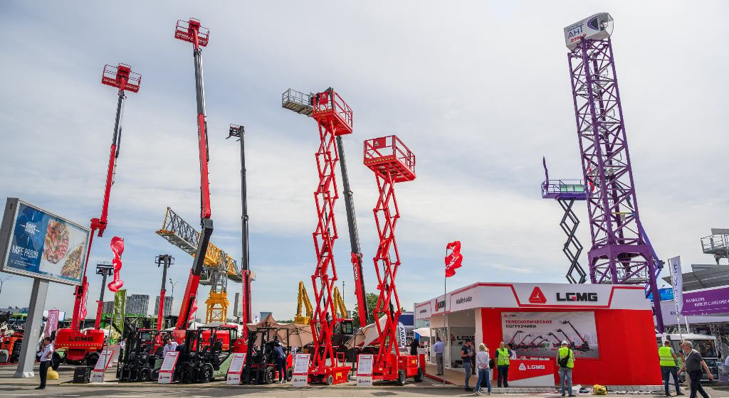 В традиционном блоке экспозиции были представлены и подъёмники, и телескопические погрузчики LGMG — от базовых популярных электрических ножничных моделей подъёмников до более мощных высотных дизельных бумов.