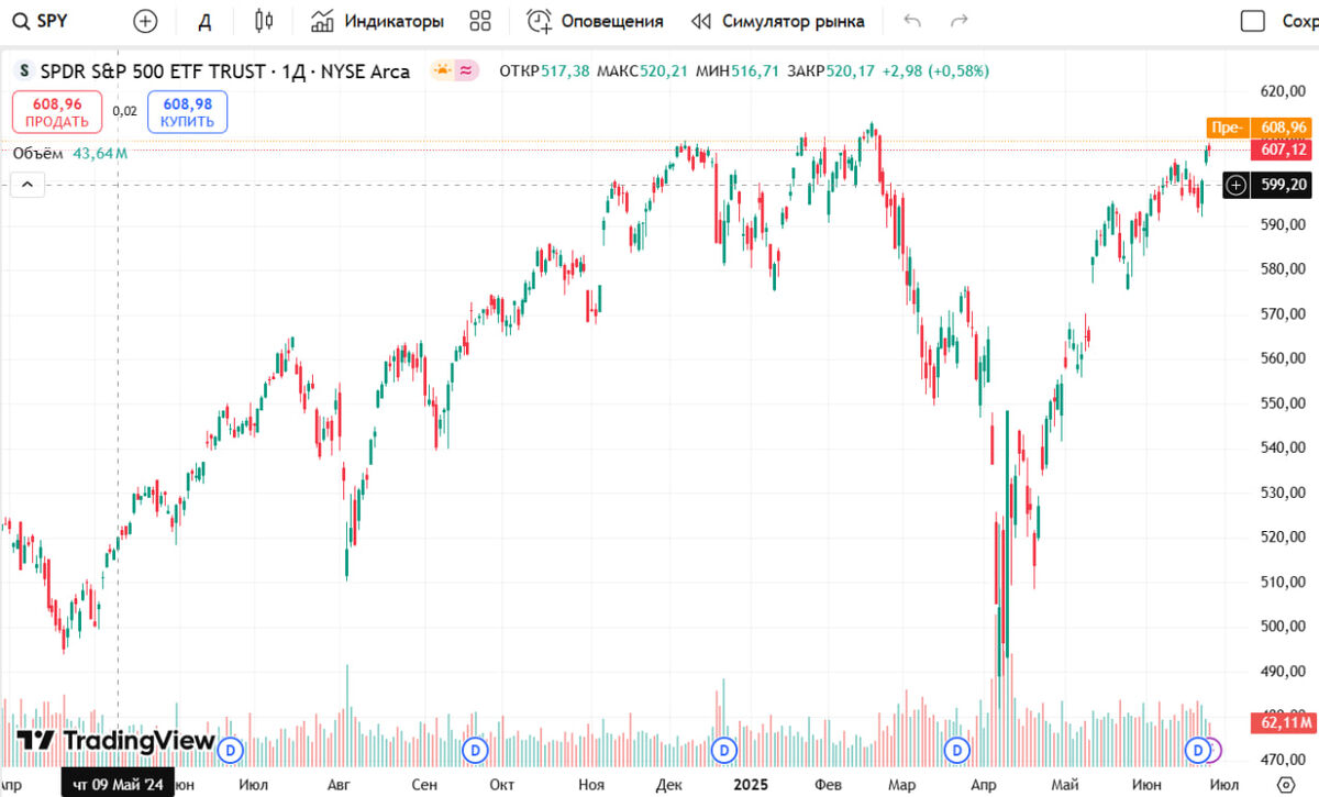☀️ Всем добрый день и позитивного настроения! Прошлый обзор по индексу S&P 500 мы делали 11 июня Как раз за день до Rollover контрактов и за 9 дней до экспирации Сегодня будем без графиков, ибо рисовать там нечего, но мы обсудим предполагаемые тенденции и факты: 1️⃣ Итак, мы обсуждали задолго заранее, что рынок выйдет к цели порядка 6061 пунктов по индексу SPX - это случилось Вчера даже индекс был на отметке 6102 пункта, а до Исторического максимума остается совсем недалеко Он был поставлен 19 февраля на уровне 6147,6 пунктов К слову цель 6116 пунктов мы ставили множество раз задолго до ее достижения 27 марта 2024 мы обсуждали цель по SPX - 🏹 6116 пунктов А еще ранее мы трижды упоминали цель 6116 пунктов в своих публикациях начиная с 2022 года: 🟠тут 🟠тут 🟠и тут - октябрь 2022 года 😜 2️⃣ Вчера NASDAQ 100 таки достиг исторического максимума, а известно, что NASDAQ часто является поводырем для других индексов 3️⃣ Однако опыт показывает, что частенько когда перед выходом на новый ис