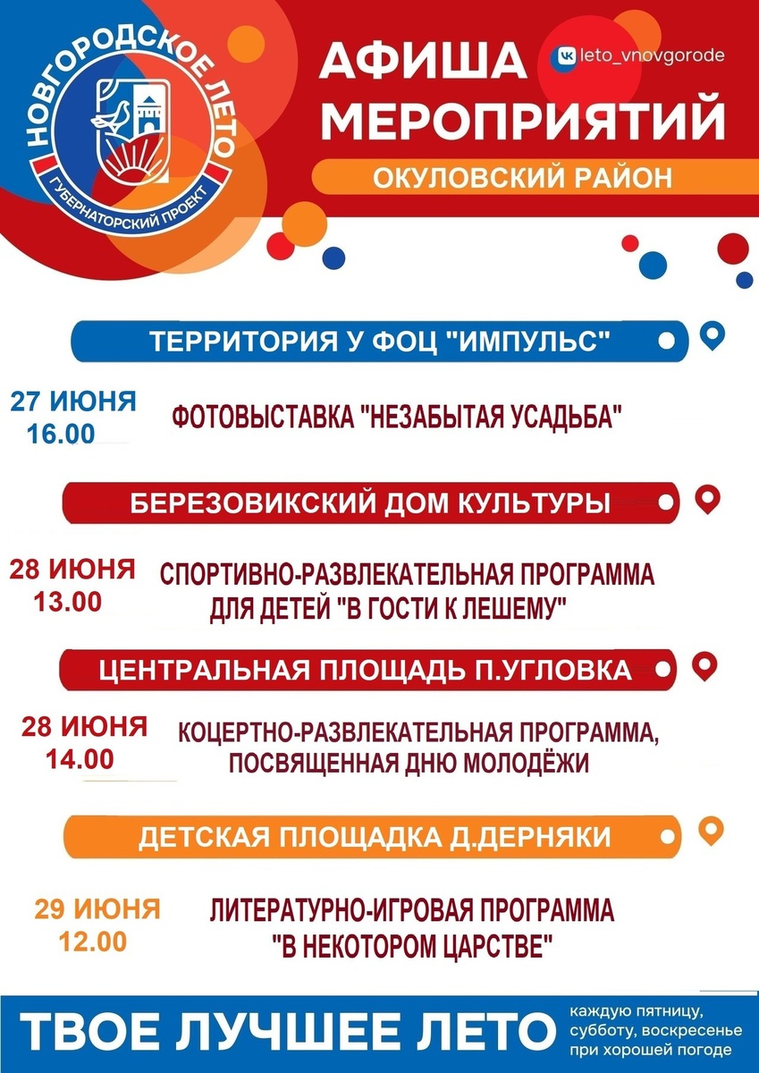 Афиша мероприятий в рамках Губернаторского проекта «Новгородское лето»!