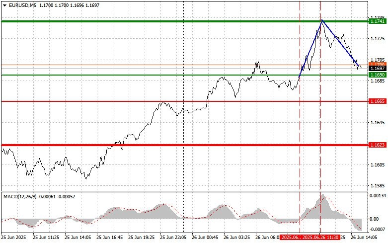 https://basechop.ru/wordpress/?p=48142 Разбор сделок и советы по торговле европейской валютой Тест цены 1.1690 пришелся на момент, когда индикатор MACD только начинал движение вверх от нулевой отметки, что стало подтверждением правильной точки входа на покупку евро. В результате пара выросла в район целевого уровня 1.1741. Продажи оттуда позволили утянуть с рынка еще около 20 пунктов прибыли. После высказываний Трампа, критикующих Пауэлла, вчерашний восходящий тренд продолжился. Отсутствие значимых экономических данных из еврозоны способствовало дальнейшему росту пары EUR/USD. Однако к середине дня первоначальный энтузиазм начал ослабевать. Вероятно, трейдеры решили зафиксировать прибыль перед рядом важной статистики из США, напрямую затрагивающую экономику страны. Первыми будут опубликованы данные о динамике ВВП за первый квартал этого года. Этот показатель является ключевым для оценки макроэкономической ситуации, отражая общее состояние экономики и темпы ее развития. Далее последу